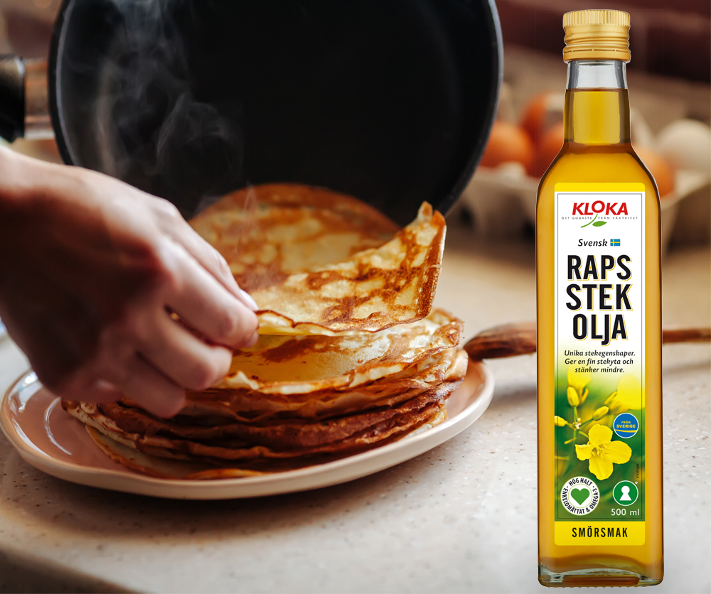 Lär dig steka med den nyttiga svenska rapsstekoljan från KLOKA. Med rapsstekolja stänker det mindre och du får en fin stekyta.