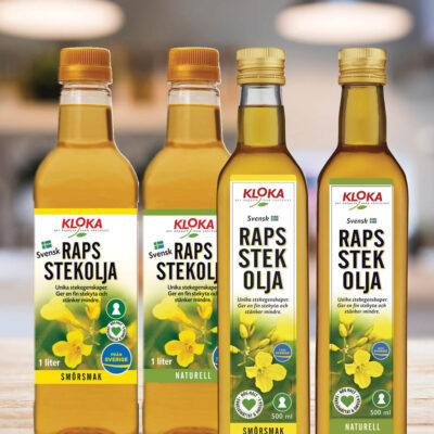 Kloka rapsstekolja pressas av svensk raps och är framtagen för att klara höga temperaturer och ge en jämn stekyta utan stänk. Variationen med smörsmak passar perfekt i både matlagning och bakning och ger en rund, mjuk smakprofil.